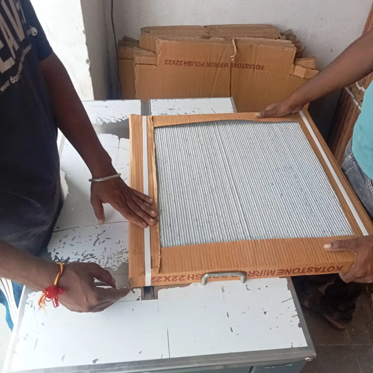 kota stone ready made tile is fully polished no polished require after fix it,it is just like ceremic tiles,one box contain two pcs,kota stone tiles is lime stone natural stone,it is very high quality of kota stone,We have our foremost goal to give potential and quality to our clients for all their use. And additionally this stone is well known for its eternal beauty and cheap prices as well, this invites a wide range of clients choosing Kota stones as their choice for their home and commercial use. Adding a zing to the interior atmosphere our range of soothingly bright bluish green colored kota stone tiles are affordable for any budget and available in all sizes. Its durability Is also an added feature. The finishing, polishing and cutting process is very closely monitored by our Quality Checkers multiple times and in different ways before giving a final go ahead. finishing of kota stone one side mirror polished other side calibrated.
